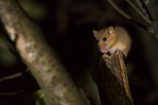 Było późne popołudnie, nadzwyczaj słonecznego września. Temperatura tego dnia była bardzo przyjemna do zasiadki pod baldachimem rozłożystej dużej jodły. Nic nie zapowiadało tego co miało nastąpić kilka godzin później. Jelenie były w szczycie swojej godowej aktywności. Ich ryki rozlegały się na wszystkie strony świata. Powietrze aż drżało od ich miłosnych wyznań. Lecz, to nie jelenie szlachetne były naszym fotograficznym celem. Naszym obiektem fotograficznym było stworzenie "milion" razy mniejsze. Tym razem zabrałem ze sobą zwykły termometr spirytusowy by sprawdzać temperaturę otoczenia i zachowanie tych małych stworów. Słońce chyliło się już bardzo ku zachodowi. Temperatura była jeszcze przyjemna +17 stopni. Nastąpiła noc, pełna strachów słyszalnych i tych niesłyszalnych. Puszczyk zwyczajny począł patrolować swój rewir gwiżdżąc co chwilę. Z drugiej strony druga sowa się odezwała. nawet myszy leśne się pochowały i zamilkły. Po chwili która trwała dla tych wieczność drobiazgów sowy umilkły. Tylko jelenie wciąż ryczały. Zerkam ukradkiem na termometr, nie jest źle +15. Pojawia się orzesznica, prędka jakby nie jedna, nie dwie sowy na nią polowały ale cała eskadra. Po chwili, pojawia się znowu, spokojniejsza już. Zapewne pierwsze jej pojawienie było testem na obecność drapieżnika. Nie zapominajmy też o łasicy która choć jest drobna i długa jako sznurówka, to jest bardzo skutecznym drapieżnikiem. Teraz, niespiesznie w samym środku leszczyny orzesznica wybiera języczkiem, łapką drobne jakieś chrząszcze czy inne owady. Bo przecież jakoś trzeba zimę przetrwać. Na szczycie patyczka odrobina orzeszka kusi tę drobną istotę by dopełnić posiłek czymś kalorycznym. Ten uroczy rudzielec wiedząc że wystawia się na atak na "otwartej" przestrzeni chowa pyszczek i oczka w wyszczerbionej części leszczyny. Wyszła. Nie przeszkadza jej błysk lampy błyskowej. Skubie swymi drobnymi ząbkami tego orzeszka. Zerkam na termometr, +10.5. Spektakl przyrody tak bardzo skrywany przed naszymi oczami niebawem się zakończy.