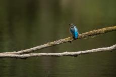 Nagle, jak grom z jasnego nieba siadł nieopodal zimorodek na patyczku chybotliwym. Niezwłocznie zaczął dzioba drzeć śpiewnym głosem. Poderwałem sprzęt do oka i nacisnąłem spust, aparat uchwycił ptaszka kolorowego na trzech klatkach pozostałe trzy pozbawiając tego klejnotu. Szybki gamoń jest. Przestałem obserwować brzeg. Coraz dłużej obserwowałem pobliskie gałązki i patyki nadwodne.