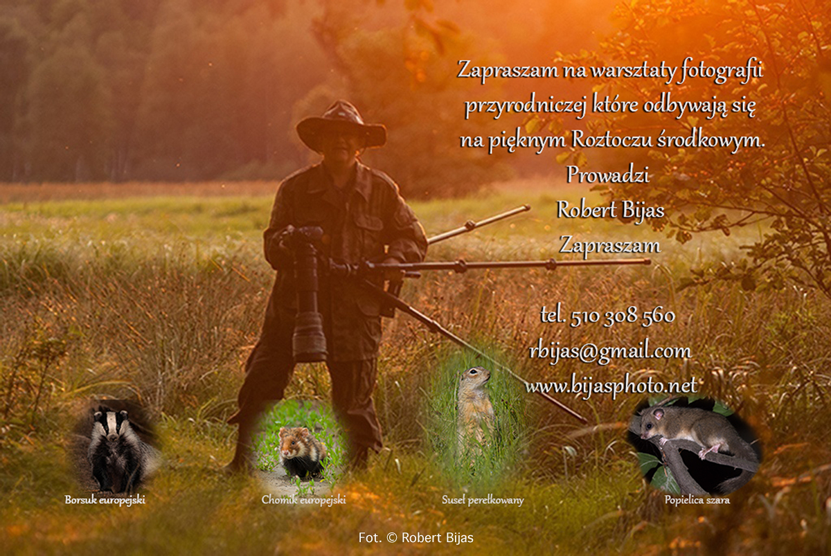 Warsztaty które się odbyły w dniach 11-12.06.2022r były szczególnie wymagające ze względu na wysokie temperatury jak i obiekty za które się zabraliśmy. Naszymi obiektami fotograficznymi były ptaki; sieweczka rzeczna, czapla siwa oraz krzyżówka. Następnie były susły perełkowane. O poranku było dość chłodno, ale nie zimno. Karimaty były rozłożone tuż przy wodzie by uzyskać jak najlepsze kadry. Kompozycja dla sieweczki rzecznej, malutkiego ptaka który żeruje nad wodą,brodząc w płyciutkiej wodzie, a gniazda zakłada w piasku, wyżej niż może sięgać wzburzona woda. Czapla siwa to ptak który poluje z wody jak i z wyniesień piasku, lub na powalonych pniach. Po porannej czapli i krzyżówkach przyszedł czas na sieweczkę rzeczną która bardzo szybko się porusza. Najciekawszym wydarzeniem było to iż sieweczka była przed nami i za nami, za nami z kolei działa się magia poranka, czyli wschodzące słońce plus opary wody unoszące się delikatnie nad wodą. Więc było pięknie. Ja obracając się z na brzuchu w końcu poczułem wilgoć, następnie czułem że jestem już normalnie mokry od połowy ud do kostek, co nie specjalnie mnie martwiło bo woda była ciepła a powietrze już nawet gorące. Momentalnie wyschłem. Susły były potraktowane jako trening, gdyż światło już nie było odpowiednie. Ale upór uczestnika się opłacił. Uczestnik wykonał bardzo dobre fotografie. Co Cieszy ze względu na młody wiek, jak i tak trudne warunki. Zwłaszcza wysoka temperatura bardzo nam doskwierała.