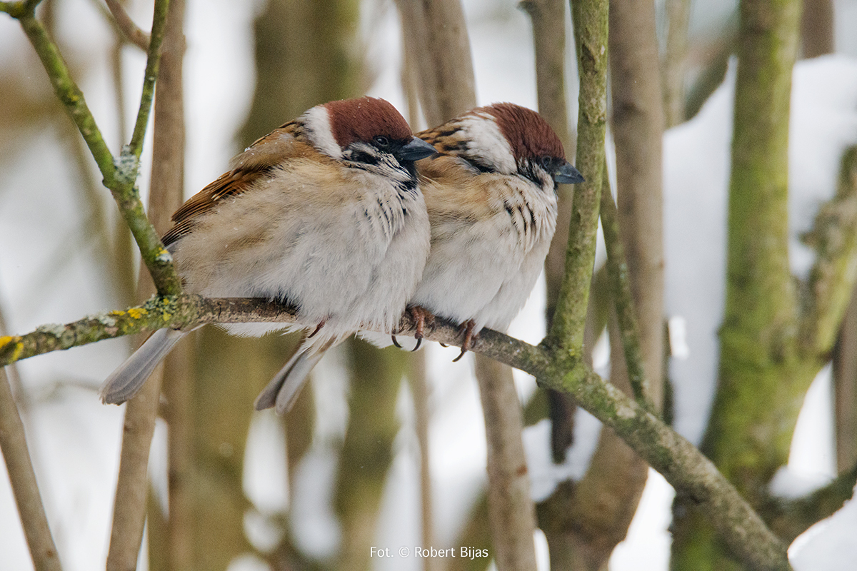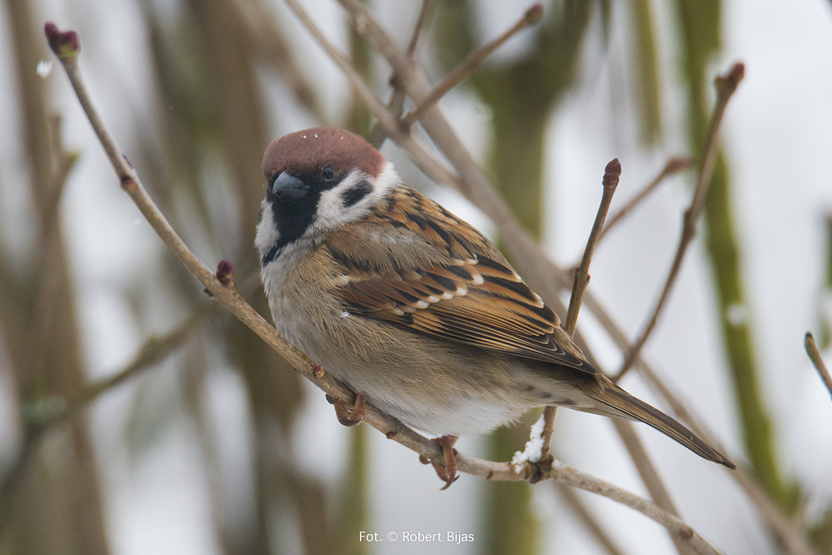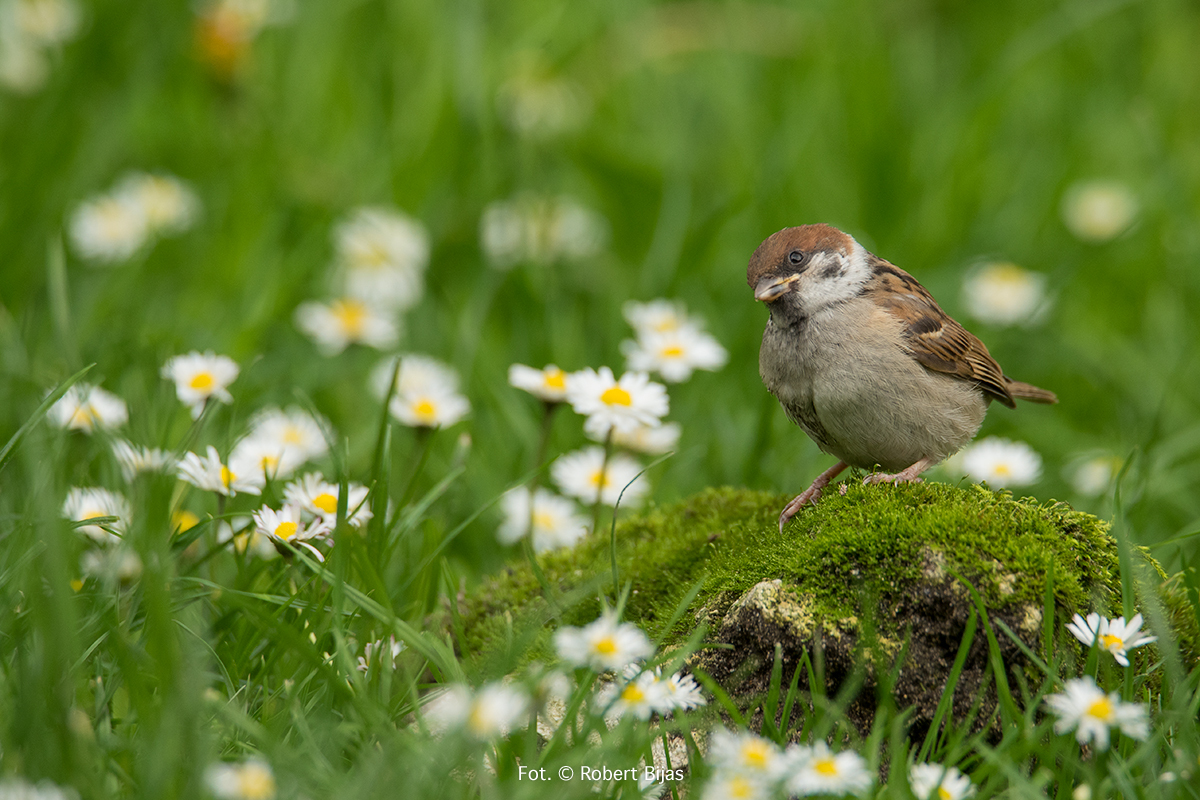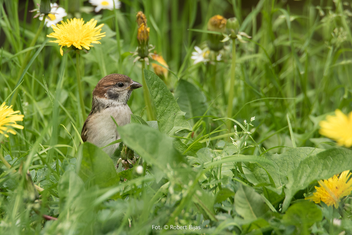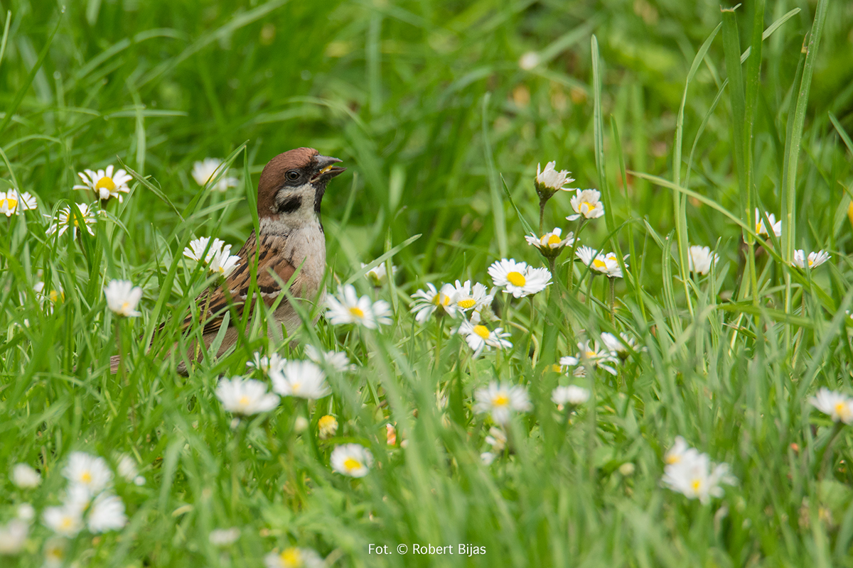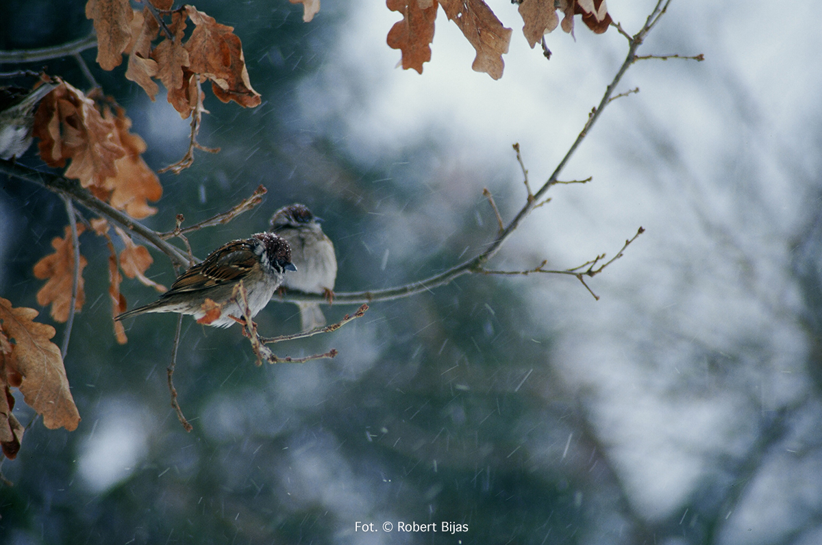 Było to wtedy gdy na mazurka mówiło się wróbel mazurek, a na wróbla domowego, zwyczajnie wróbel. Tak było przynajmniej u nas. Generalnie i tak mówiło się na te ptaki wróbel. Fotografia cyfrowa była dopiero w powijakach, więc jak sami się domyślacie fotografie wykonywałem na negatywach i diapozytywach. O ile, negatywy były tanie i nie było potrzeby liczenia klatek, o tyle slajdy były drogie i nad każdym naciśnięciem spustu migawki myślało się, czy naprawdę warto. Zrobiłem sobie karmnik pod oknem pokoju w którym mieszkam. Z początku robiłem zdjęcia prze okno, ale nie podobało mi się to za bardzo. Jedyna korzyść z tego jaka wynikła to wiedza o tym jak się zachowują, co je płoszy i co lubią. Z nastaniem wiosny ptaki już z rzadka się pokazywały. Ruszyłem w teren. Widziałem dużo ciekawych rzeczy, podziwiałem świat przez obiektyw. Nadeszły chłody jesienne, wraz z nimi reaktywowałem karmnik. Było coraz zimniej i zimniej, zaczął prószyć śnieg, wiatr dopełniał odczucie zimna. Przylatywało dużo sikor, dzwońców. Mazurków nie było. Pewnego dnia zawołano mnie do kuchni. Zobacz twoje mazurki chyba. Pobiegłem po aparat, w biegu zmieniłem parametry. Slajd, ISO 400. Mało, bardzo mało. Delikatnie naciskam klamkę drzwi, delikatnie je uchylam. Bardzo się bałem by zawiasy nie zaskrzypiały. Są na dębie, nawet niezbyt wysoko. Śnieg lekko zacina, mazurki przykulone coraz mrużą swe oczka. Widać że jest im bardzo, bardzo zimno. Przyłożyłem aparat do oka i zrobiłem trzy zdjęcia, wtedy nie wiadomo było od razu czy zdjęcie jest dobre. Czekało się wiele dni, bywało że i tygodni. Ubrałem się solidniej. Wyszedłem znowu na podwórek. Poszukałem skrzyneczki, znalazłem coś takiego i umocowałem za karmnikiem. Część tego pudełka przesłoniłem od dołu, na górze zrobiłem z deseczki daszek. Włożyłem trochę suchych liści, znalazła się jakaś słoma. Ptaki korzystały z tego ptasiego hotelu, bywało że o miejsce się biły. Miałem duże nadzieje związane z tym hotelem dotyczącym mazurków. Niestety, zdjęcie mazurków które wykonałem tam na dębie były ostatnimi zdjęciami mazurków. Mazurki zniknęły. Mazurki widywałem czasami gdzieś we wsiach i w miastach, ale nie było już ich tak wiele jak w latach mojego dzieciństwa. Mijały lata, fotografowałem wiele gatunków ptaków, niektóre były dość rzadkie. Mazurków i wróbli jak na lekarstwo. Źle się działo, modernizacja rolnictwa i chemizacja mocno uderzyła w świat ptaków i ssaków. Przełom nastąpił w 2019 roku, wiosna była już ciepła gdy za oknem usłyszałem śpiew ptaka. Wyjrzałem za okno, a tam na parawanie siedzi mazurek! Śpiewa na prawo i lewo, w tym momencie doleciała samiczka. Więc trele przybrały na sile. Cieszyłem się bardzo. Sypnąłem nieco ziarna słonecznika. I położyłem omszały kamień, nieopodal była miseczka z wodą. Tak, oczywiście specjalnie dla tych przybyszów z plamką na policzku. Siedziałem i cieszyłem się bardzo i czekałem na rozwój wydarzeń. Kamień został zaakceptowany, miseczka z wodą także. Zdjęć jeszcze nie robiłem. Bardzo się cieszyłem. Minęło tyle lat i znowu są u mnie. Na drugi dzień położyłem się na trawniku i robiłem zdjęcia, już nie slajdzie czy negatywie, miałem już aparat cyfrowy Nikon D 750 a obiektyw to Tamron 150-600 G1. Różnica była bardzo duża. Zwłaszcza cena uzyskania zdjęcia znacząco spadła. Aktywność w powietrzu mazurków i sikor przybrała na sile. Widać było wyraźnie że latają w tą i z powrotem po larwy, robaczki, cokolwiek do jedzenia. Znaczy się mają młode i karmią te małe żarłoki. Kamień leżał czasami tylko przestawiany by trawnik doprowadzić do porządku. Na zdjęciach zobaczycie mazurka z tzw zajadami to są właśnie młode ptaszki. Wiele radości mi sprawiły te małe gamonie, ciekawie spoglądające w odbicie swoje w szkle obiektywu. Nastała wiosna 2020 roku, dziwna nieco i przedwczesna, zimna i gorąca (jak na wiosnę). Mazurki na dobre zagościły na naszym podwórku. I wiecie co? Będą młode!!!