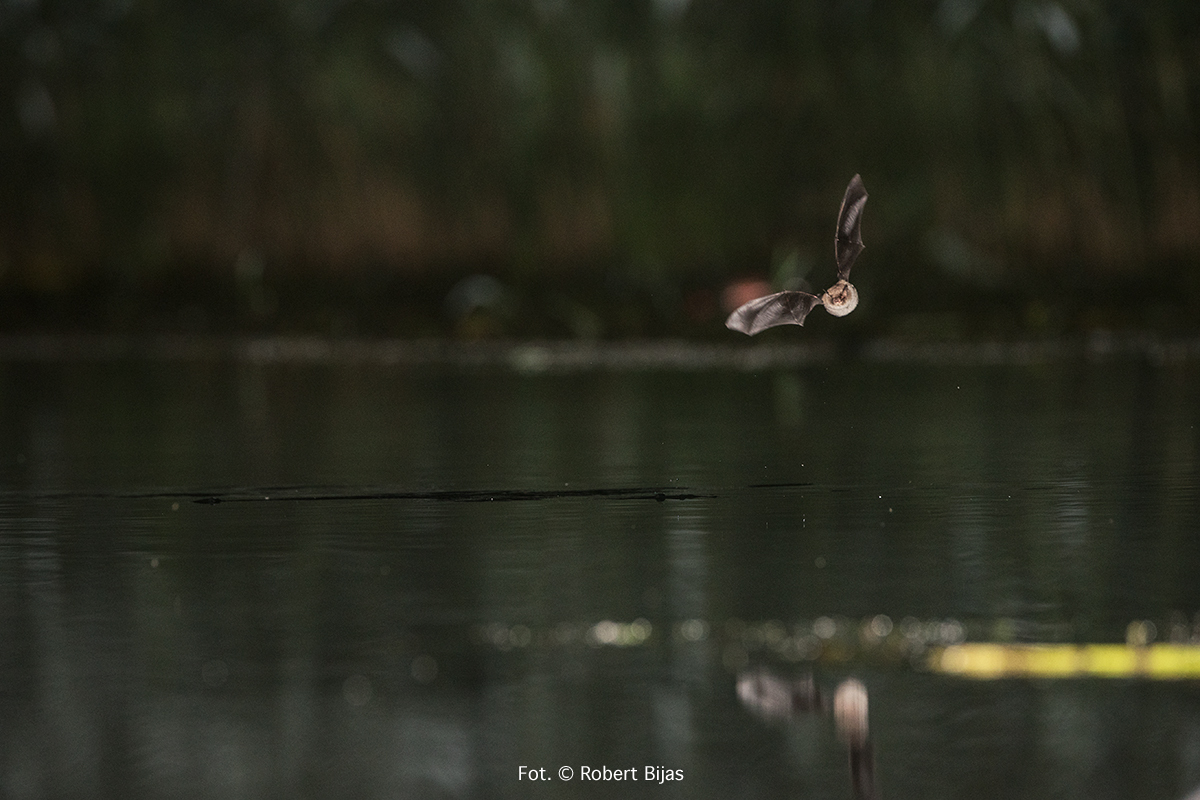 Wydawać by sie mogło, mi się tak wydawało. Że za sobą mamy już ciągłą szarugę listopad przypominający. No niestety jeszcze nie ma stabilnej pogody, a co za tym idzie bohaterowie moich fotografii, towarzysze nocnych zasiadek też żerują dość niestabilnie. Wydawać by się mogło, mi sięe tak wydawało, że im głębsza noc tym więcej nietoperzy będzie. Aha. Figę mi pokazały. Barometr maja lepszy ni cała NASA i ESA razem wzięte. Na początku bum, latały jak opętane, wszędzie było ich pełno oczywiście nie tam gdzie miałem skierowany obiektyw. Patrzyłem zachwycony na ich akrobacje niczym z na myśliwce w bitwie o Anglię. Były Imelmany i świece i nurkowanie nagłe, już myślałem że się przeliczył jeden z drugim. Tuż nad wodą 5 może 10 centymetrów lot wyrównywały by w jednej sekundzie wystrzelić pionowo w górę po łakomy kąsek. Miałem widok wspaniały a w tle, rozbrzmiewały echa egzystencjalne kaczek, łabędzi, tylko sarny ze swoimi oczami w kształcie migdałów jak duchy zmierzały w tylko sobie znanym kierunku. Nadszedło moment kiedy nietoperze pojawiły się tam gdzie ich oczekiwałem z utęsknieniem. Nie wszystko poszło jakbym sobie tego życzył, w końcu życie to nie koncert życzeń. Jest już kompletnie ciemno, miało być ich coraz więcej, a było mniej. Nastała cisza zupełna. Nuda, nic się niedzieje, nuda. Zaczynam sie pakować. Wszystko mokre choć deszczu nie było. U schyłku nocy, gdy już byłem w łóżku nadszedł deszcz. To dlatego nietoperze na początku żerowały jak opętane.